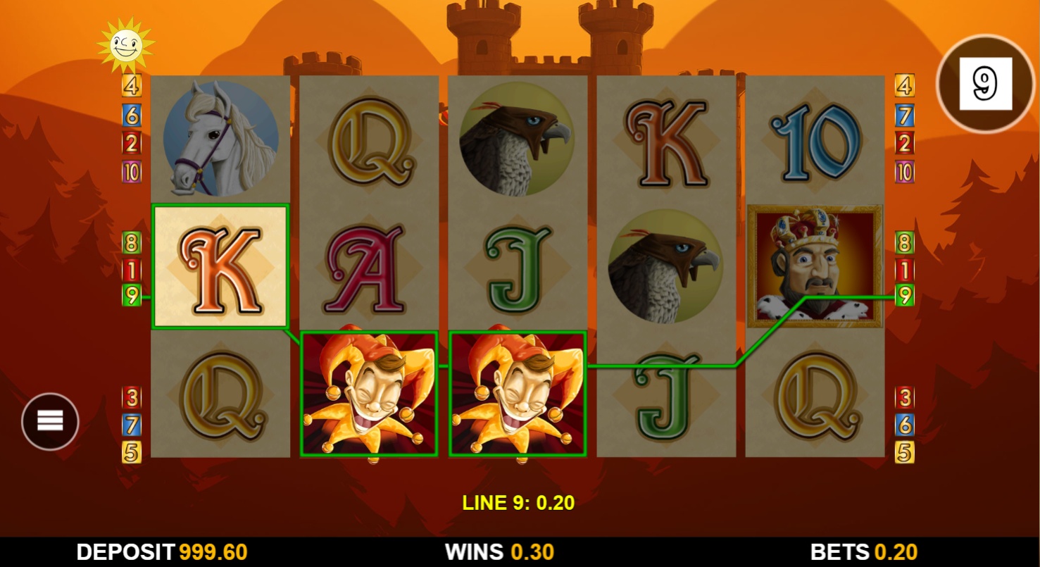 The Joker symbol pays out the most, followed by the king, queen, falcon, and horse. You'll bag smaller wins if you land the A, K, Q, J, or 10 symbols.