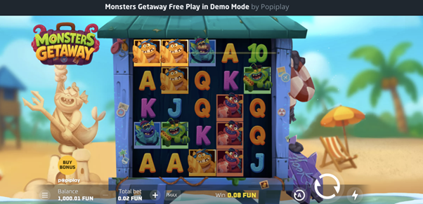Monsters Getaway is a beach/monster-themed, medium-high volatility slot with an RTP of 96.77%, and it boasts a maximum win worth 4,320x your total bet.
