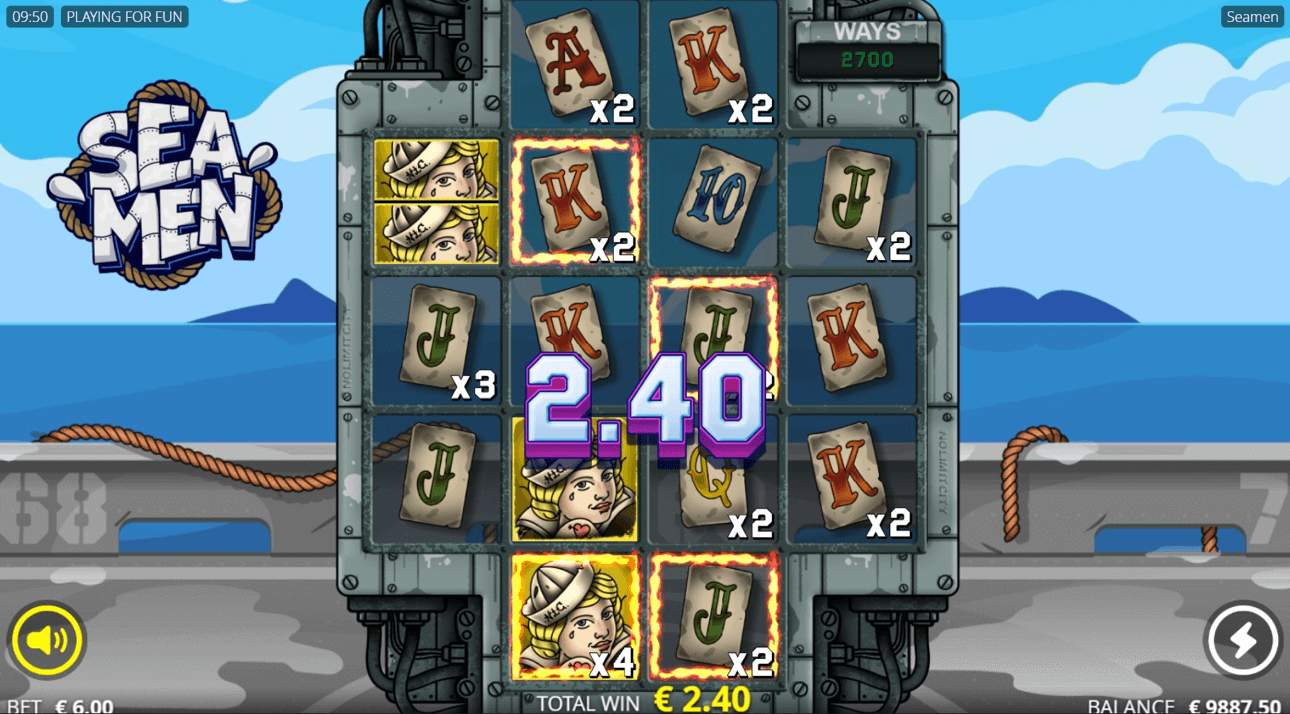 The gameplay here is pretty smooth sailing. The grid is shaped a bit like a cross, with reels 1 and 4 having three rows, and the middle reels having five each. Seamen has a default of 225 ways to win, but when special features kick in, this can increase. Wins pay out when matching symbols land on adjacent reels from left to right, but they don't need to land on specific paylines in other games.